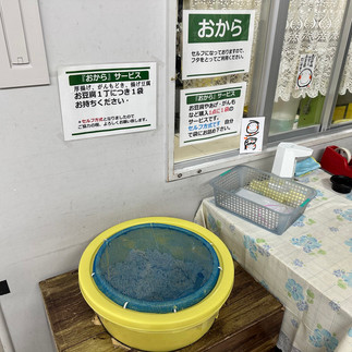 豆腐は道の駅内にある工房で作られています。豆腐類を購入すると、おからをサービスでもらえます。セルフサービスなのがまたイイ感じ。